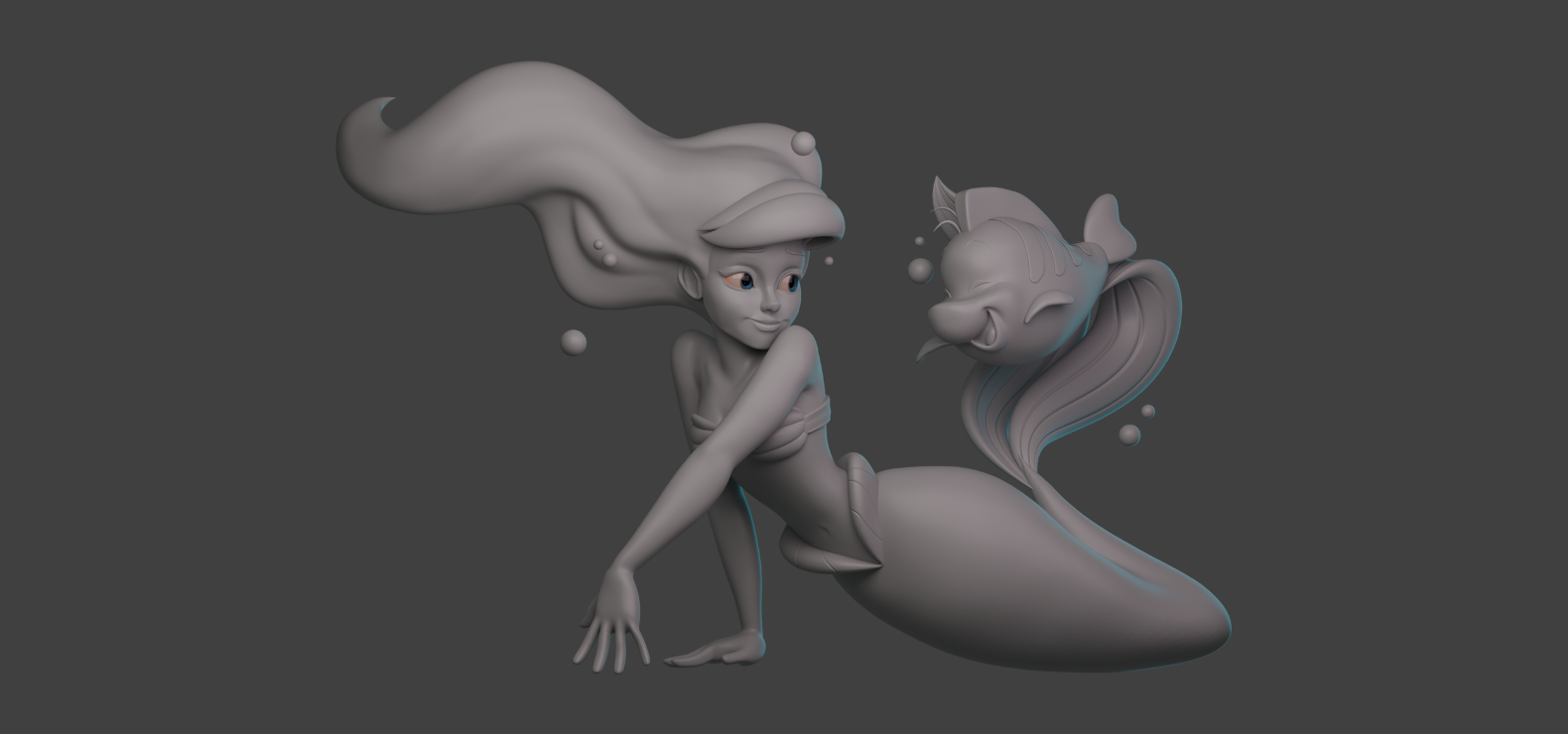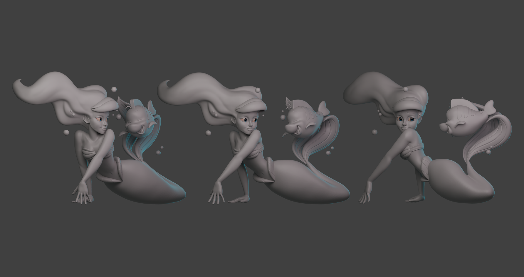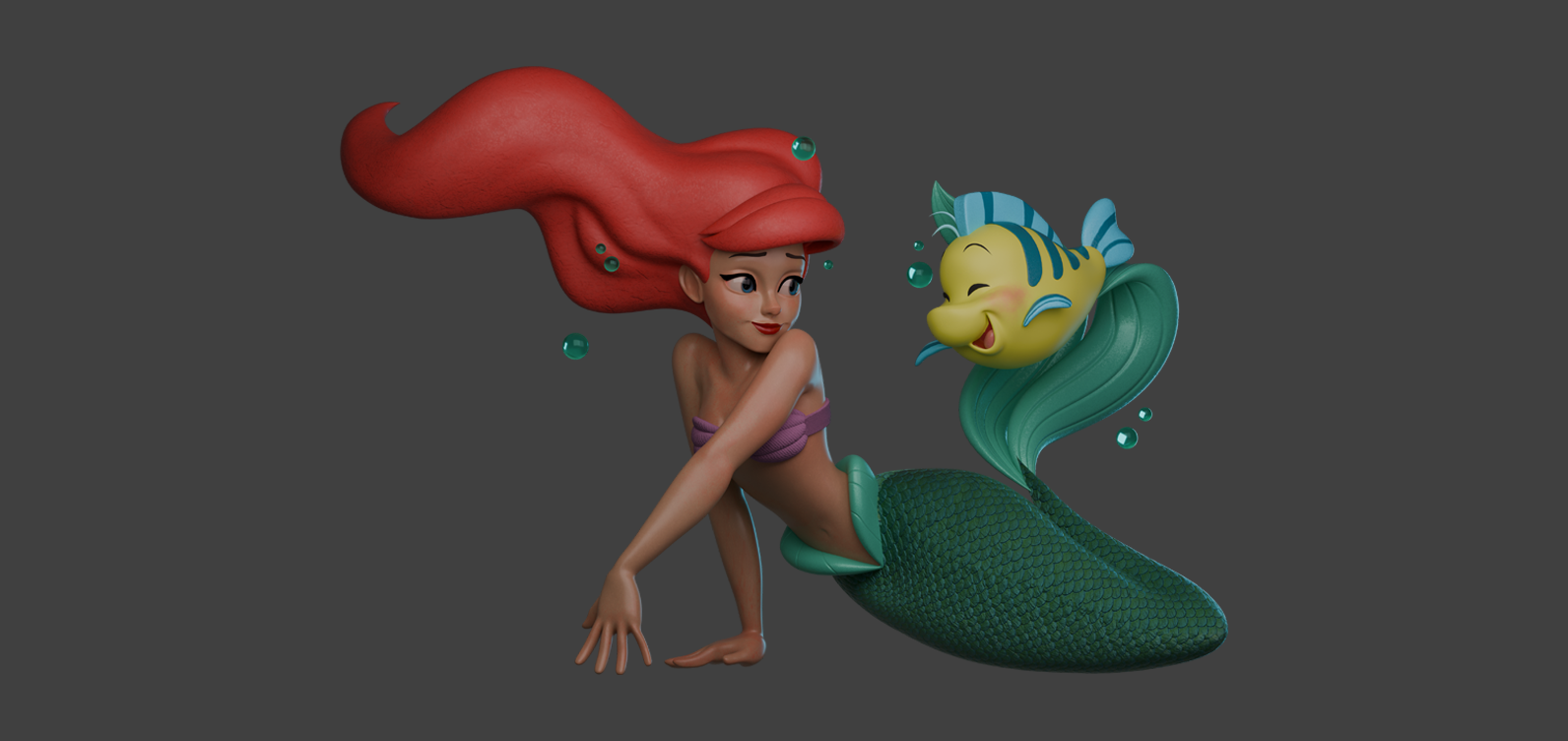 This sculpt was inspired by and based on the art style and design from artist Steven Thompson featuring the characters Ariel and Flounder from Disney's "The Little Mermaid".