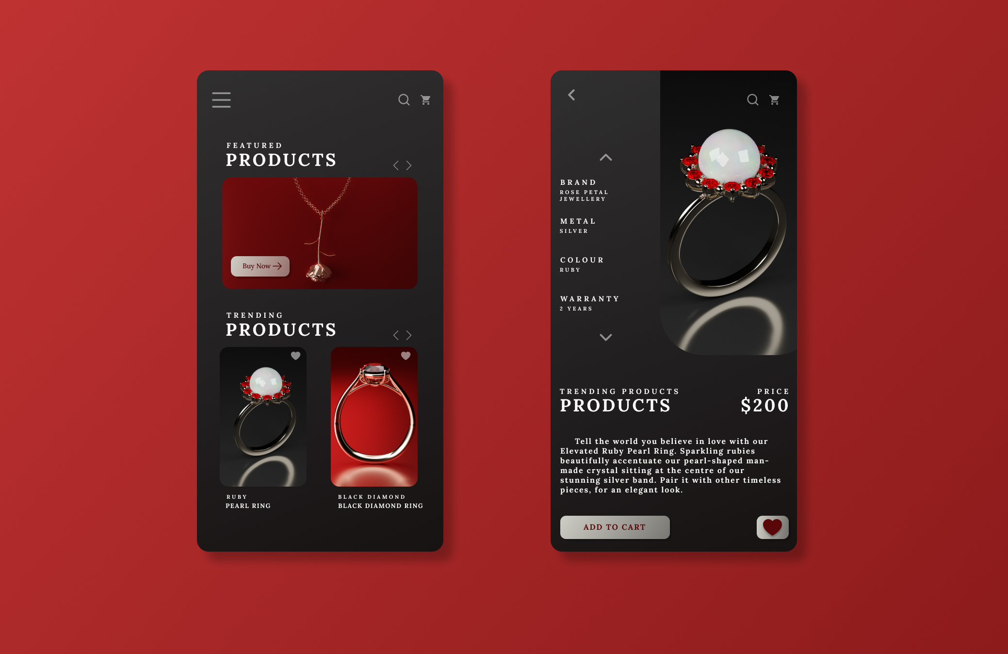 Rose Petal Jewellry is a mock-up company showing off beautiful and unique styles of jewellry with a sophisticated look. The photos provided show the layouts of all custom 3D-rendered images.